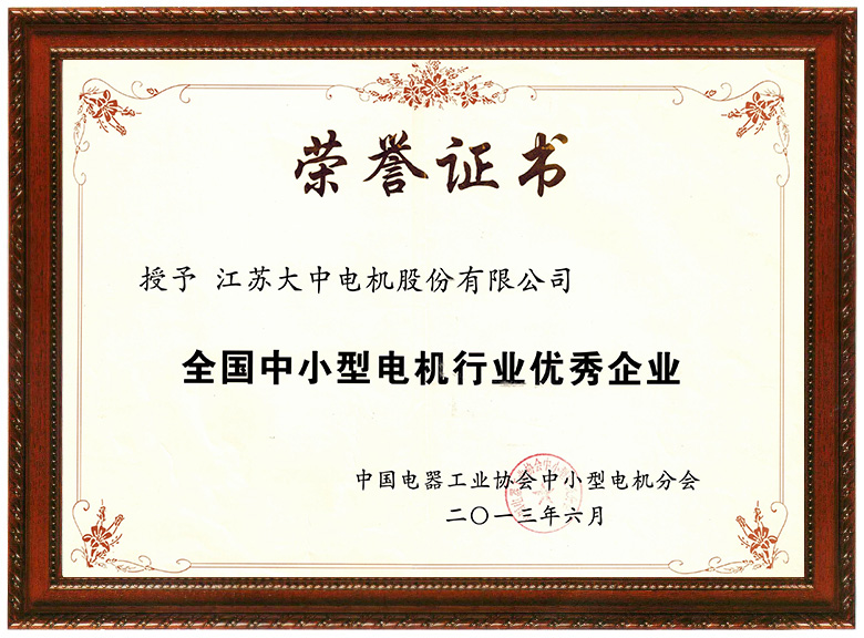 全國中小型電機行業(yè)優(yōu)秀企業(yè)